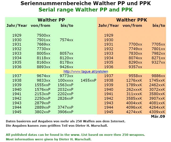 A ver si te sirve esta tabla. Puedes mirar un tema anterior del compañero MNT71 titulado "Duda sobre "rara" WALTHER PP, para libro de coleccionista".