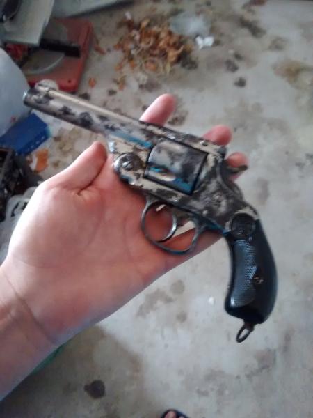 Es un GAC de calibre 38 S&W. Los GAC no eran precisamente de mala construcción, pero no dispararía nada mas que pólvora negra con el.