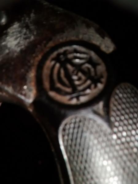 En el caño dice Smill & Welson, como ya dijeron es una copia de un Smith & Wesson, de fabricación española, a principios del siglo XX había mucha gente que no sabia leer o leia mal de ahí poner un nombre parecido para confundir al comprador.