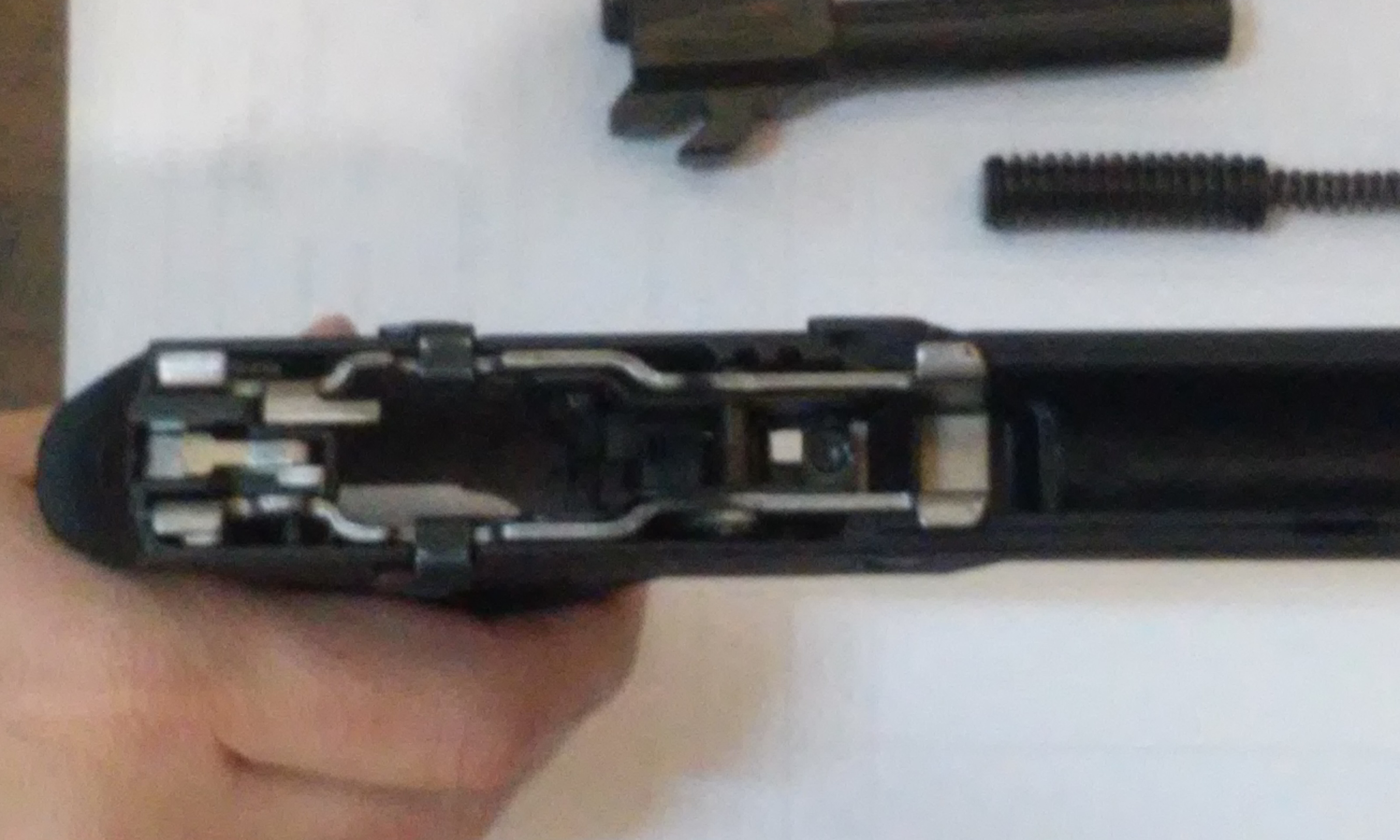 La otra, es que estando prevenido de que su sistema de disparo era en doble acción, no podía ni imaginarme un recorrido tan corto y neto. Tan corto y neto que, una vez más, el dinamómetro volvió a darme otra sorpresa. Ese recorrido y su resistencia marcó 2,300. Al igual que con la P-250, hube de hacer varias veces la medición, para asegurarme que el dato era correcto.