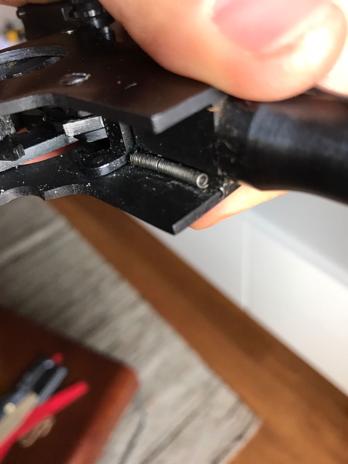 No se si será por desgaste de esa pieza en forma de U, o que le falte un muelle que le de más fuerza, no se.