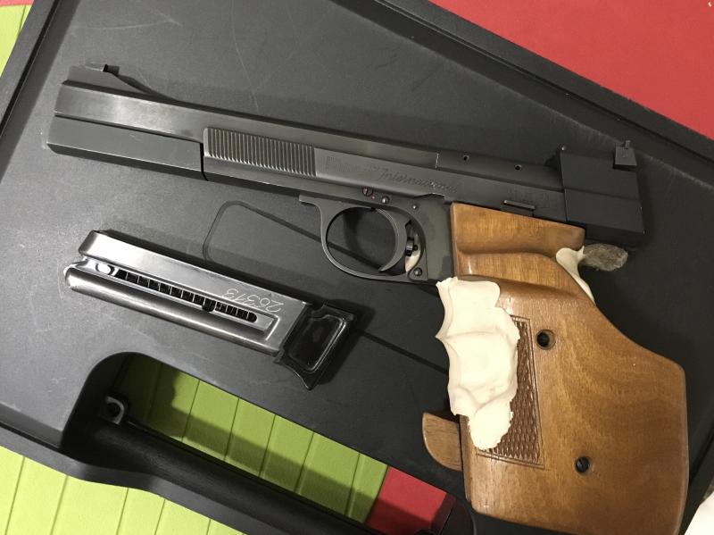 Aquí os enseño mi maravillosa Hammerli International,la compré de segunda mano pero casi sin uso, no la cambio por ninguna de las de ahora como Pardinis o Morinis,entrenando le saco 540 puntos en Standard, aunque en competición menos, pero eso ya es por culpa del tirador, jejeje.Espero seguir mejorando y poder darle caña a pistolas más modernas, jajaja.Ya no se fabrican armas con estos materiales casi indestructibles, no he tenido una sola interrupción en más de 12000 disparos y aunque no la limpie después de 1000 tiros sigue haciendo dieces, probar a hacerlo con otras armas a ver qué pasa, si encuentro otra en buen estado la compraré para tener repuestos en el futuro.