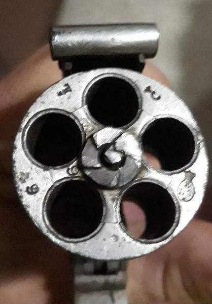 Hola, muy buenas a todos, tengo un revolver antiguo y no identificó ni marca ni fabricante. Es muy parecido al S&W pero creo que no lo es.Tiene por un lado el símbolo de una corona y una estrella acompañadas de una letra.