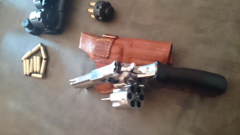 Buenas compañeros. Pues este es el mio que me llego ayer. Se lo compre a un compañero del foro y me he enamorado. Desde ayer no dejo de sacarle brillo con el trapo jejeje me encanta. Lo probe ayer y va muy bien y no mete mucho bombazo tampoco como otros 357. He visto en internet que las cachas estan echas con un compuesto especial para aliviar el retroceso y asi es. Y si os fijais solo tiene tres tornillos a la vista, dos del alza regulable y otro de la cacha nada mas. La calidad es buenisima