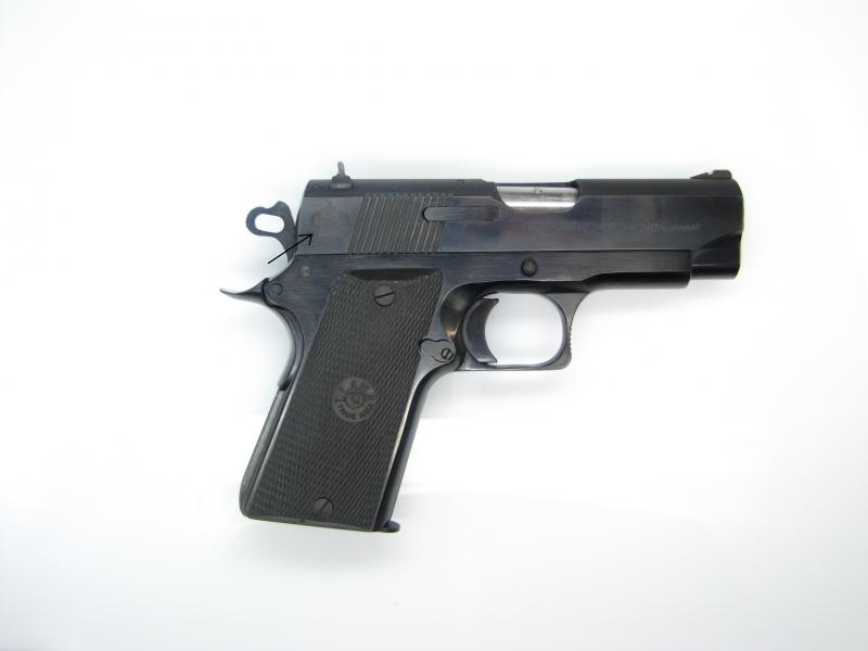 Un ejemplo de pistola Llama Mod I con punzón de GECO en el lado izquierdo.