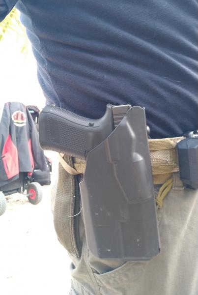 En plena tirada, de IPSC, todo cuenta y suma. Glock19+TLR6.
