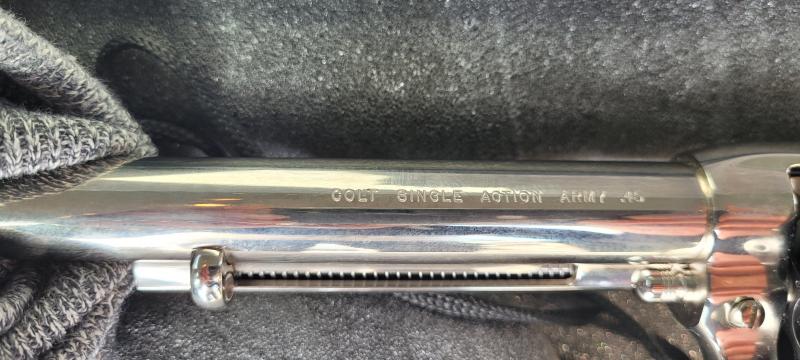 Si es cromado, lo que me pareció al cogerlo la primera vez, es que pesaba menos que el 45 cattleman de Uberti, con cañon de 4 1/3" que tengo, pero pesa mas el Colt, será el aquilibrio que tiene entre cuerpo y cañon.