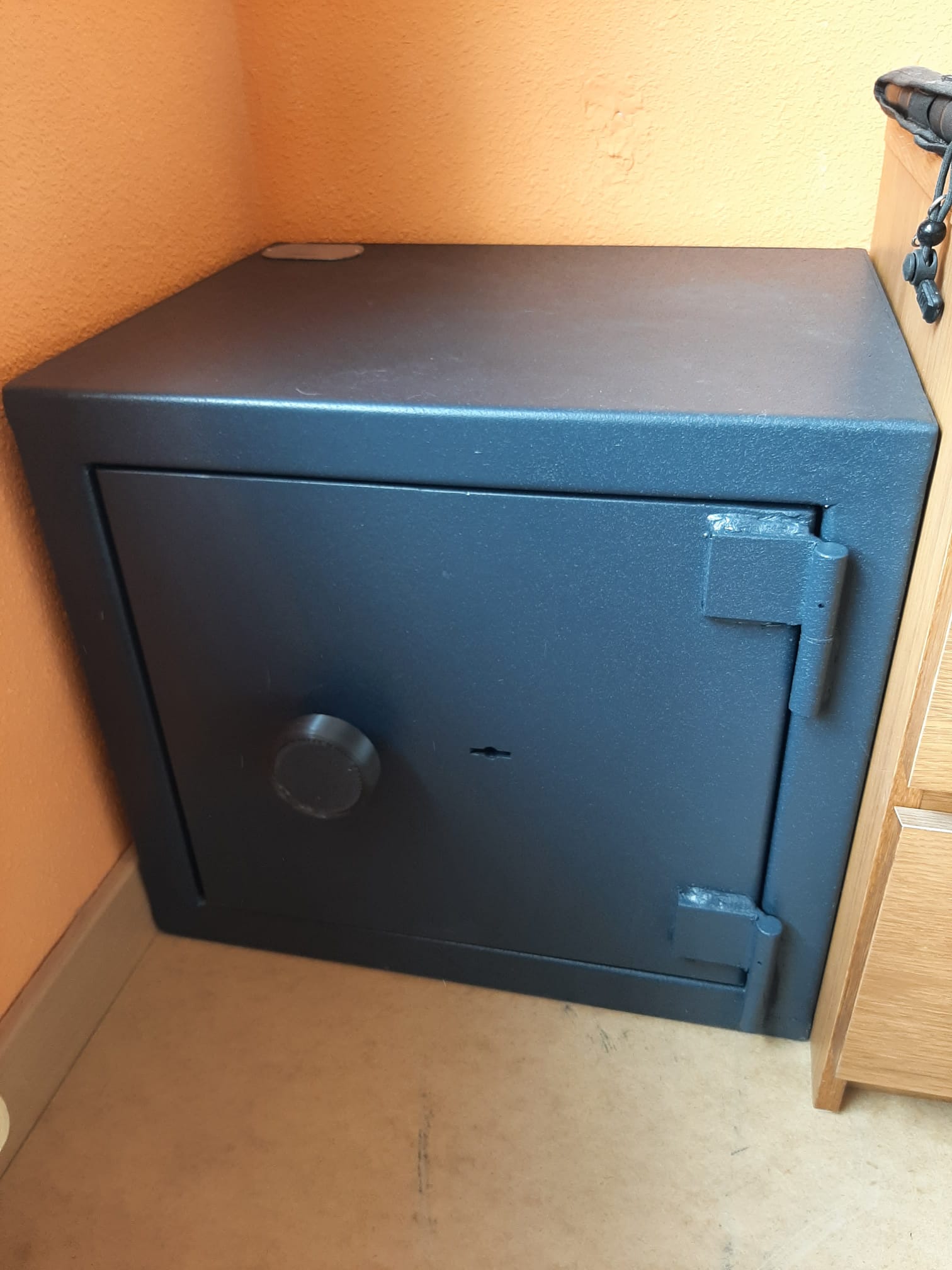 Lo bajé de palet cojiendolo por una esquina (exterior) y la otra mano en diagonal en la otra esquina (con la puerta abierta) la punta de los dedos hacia el interior del armero.