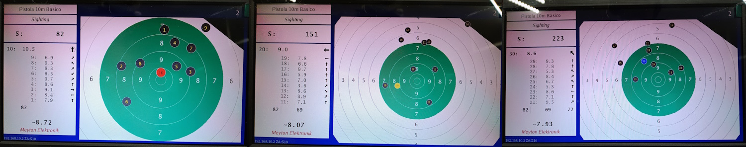 Como sigo sin entrenar en condiciones velocidad aunque tiré algo en 8 segundos días atrás para intentar pillar un ritmo al tener el primer recorrido del disparador tan largo, me concentré en eso cada vez que se iniciaba una tanda de 10 segundos.