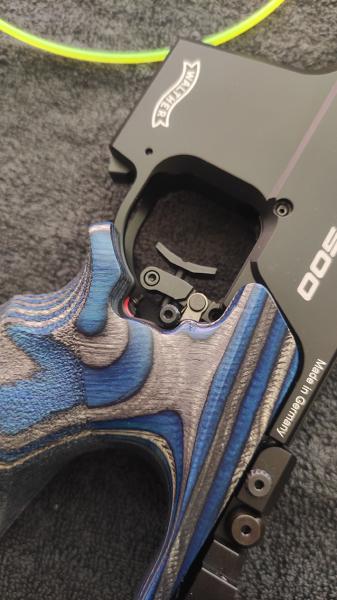 Sin embargo la alemana trae un par de "extras" que me gustan bastante. Permite reemplazar todo el sistema de gatillo en una sola pieza (similar al de la veterana GSP Expert), y el alza también permite reemplazarla completa con un tornillo.