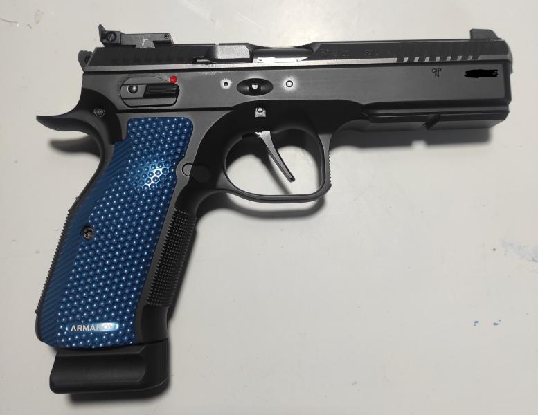 También le he cambiado el punto de mira, alza, gatillo (por uno recto) y cachas por unas Armanov (tengo la mano muy grande).