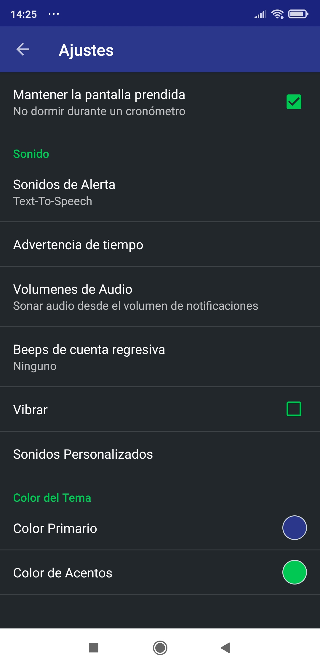 Y lo pude solucionar descargando esta aplicación: "TEMPORIZADOR DE INTERVALOS,Martín Machata"