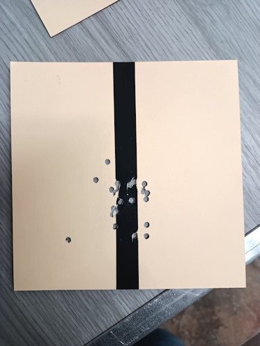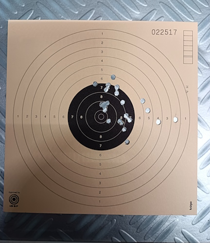 Del centro de la agrupación que se desmarca al centro vertical de la diana hay 2,5 cm. El movimiento erróneo en mi mano tiene que ser muy leve.