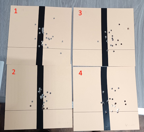 La tirada mucho mejor, cada vez se van menos a la derecha, muy concentrado en las luces y tengo que ir a ver al óptico porque tenemos que ajustar el diopter, los bordes de las miras los veo borrosos, casi nada, pero supongo que se podrá corregir. Nada que me cree inquietud alguna.
