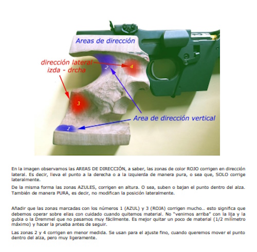 PD: Hay un asunto que todavía no tengo muy claro, pero supongo que lo descubriré cuando ya la empuñadura se vuelva más "cómoda". ¿Habrá que variar los ajustes de las miras después o no será necesario? Lo sabré después del trabajillo
