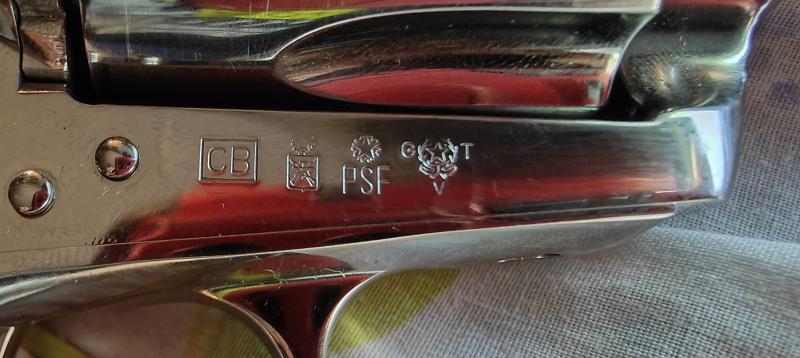 Como podria saber si es un Colt original y no una copia Italiana, pues el punzonado CB dentro de un rectangulo es igual que la que se punzonan en las armas italianas para saber el año de fabricacion, el cual pertenecería al año 2007.