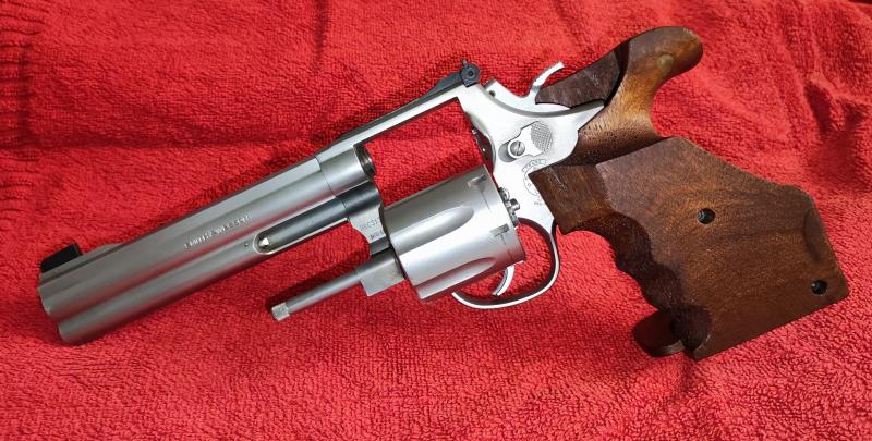 Pues yo tengo el mismo pero en 686-5 Target Champion, tengo las 3 cachas, las de goma, las anatomicas regulables, y las que trae originales, y con las anatomicas, y mira que estoy hecho a las de la Walther GSP, no termino de adaptarme a ellas, tiro mejor con las originales que trae.