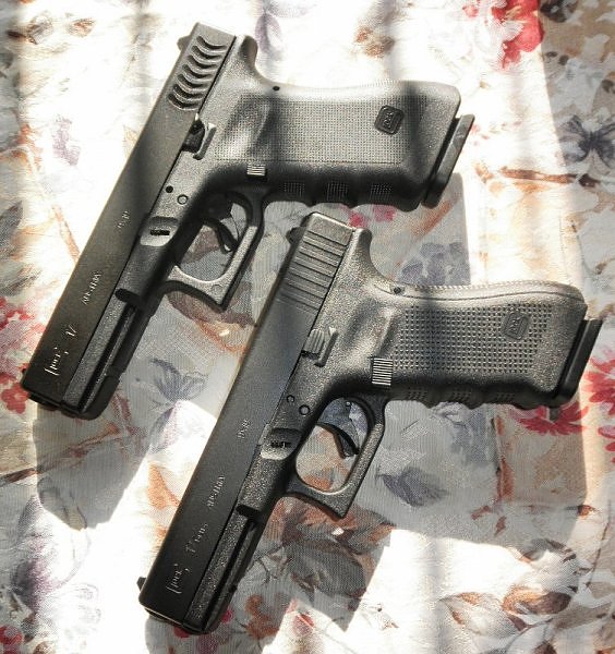 Aqui va una foto donde se pueden apreciar las diferencias de la Glock RTF2 y la 4 Generacion .