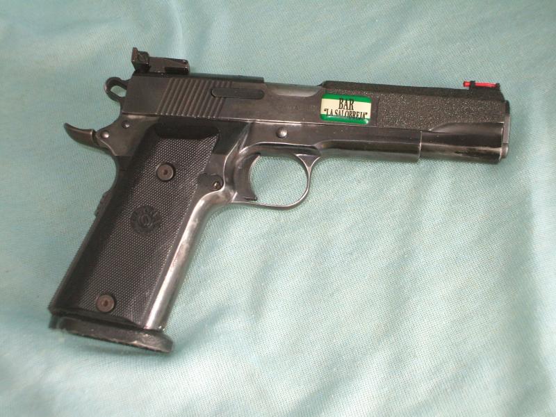 Está tal cual salió de fábrica hace medio siglo. Fíjate en la foto del manual. La corredera es de acero pulido y el armazón en pavón azul. Las cachas también son las originales. Un saludo.
