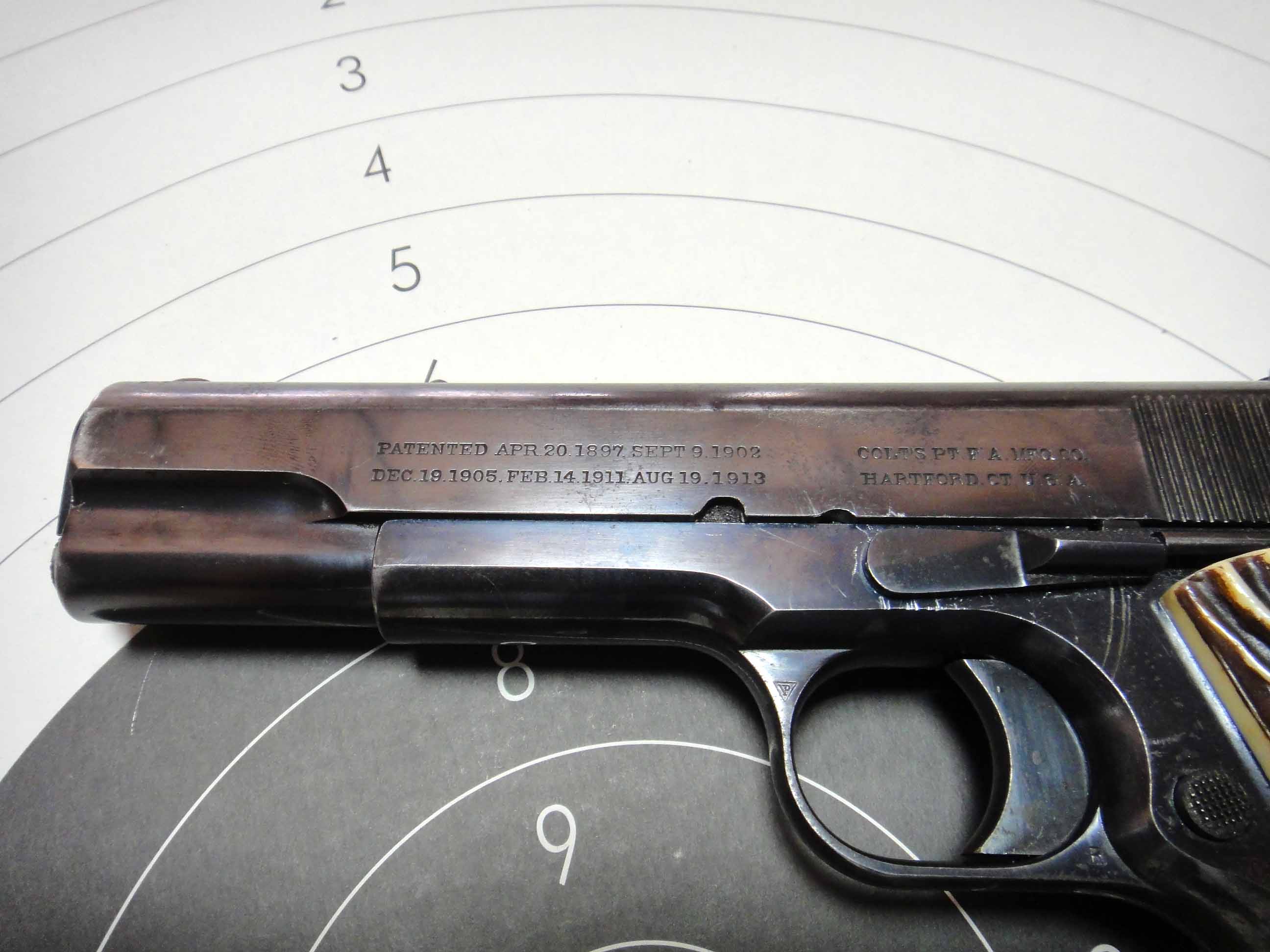Para mi saber y entender, esa es una Colt 1911, a secas, es decir, de antes de 1926, año en que salio el modelo A1, con leves diferencias.