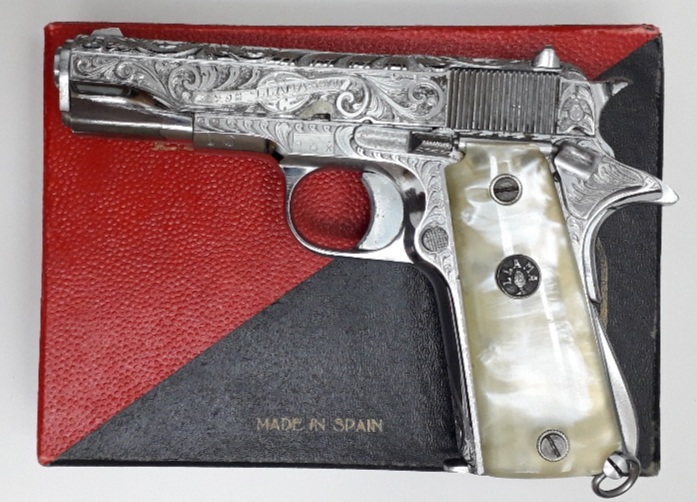 Una joya guiada en F, la caja original tiene el mismo número que la pistola.