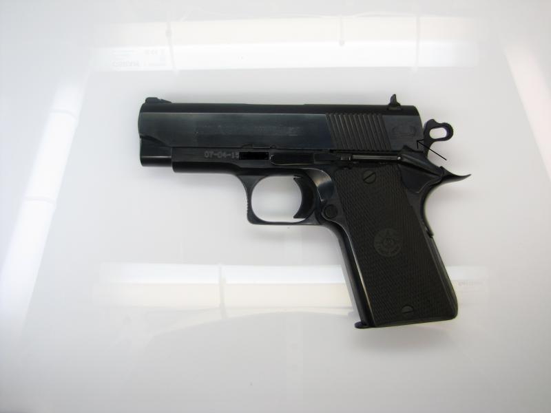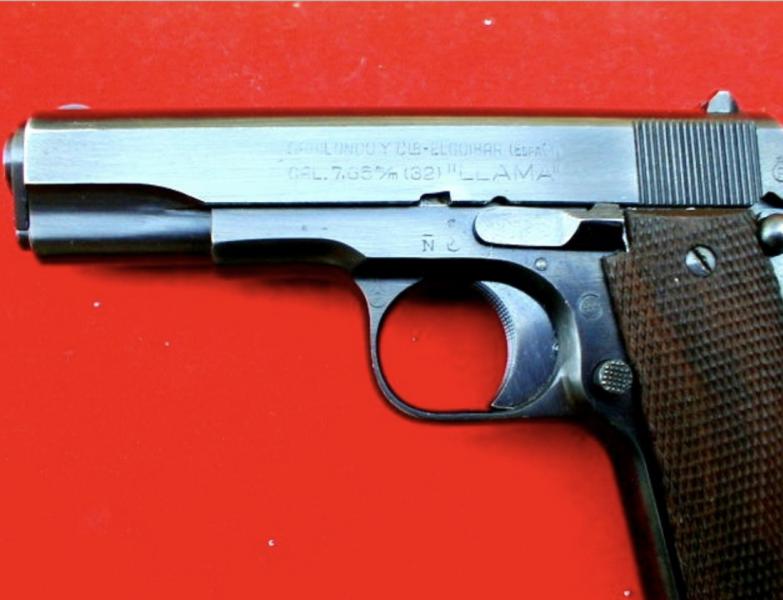 Un ejemplo de pistola Llama Mod I con punzón de GECO en el lado izquierdo.