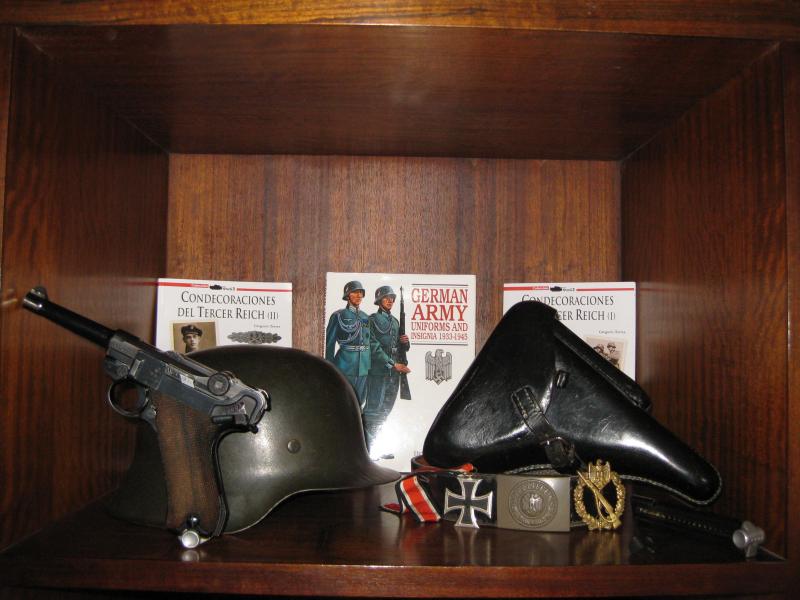 Bueno, quizá sea un poco reiterativo por mostrar de nuevo mi Luger militar código 42 de 1939, pero para darle un poco de más de vida a este hilo, me permito colgaros una nueva foto de mis modestos tesoros de militaria alemana original de la Segunda Guerra Mundial, donde podéis encontrar mi particular joya de la corona. La funda, por cierto, también es del mismo año 1939.