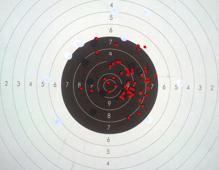 a ver que os parece esta diana de hoy, es reutilizada, los impactos en rojo son los válidos. Standard a 150sg.