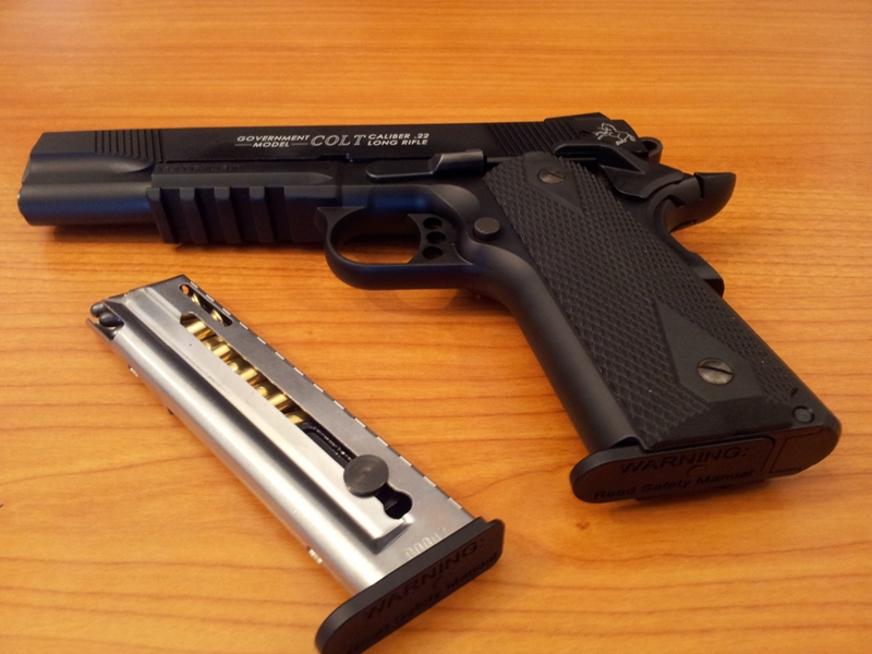 Hola, esta es mi COLT 1911 RAIL GUN .22 La fabrica WALTHER en Alemania bajo licencia COLT. Como podeis ver tiene el martillo y el gatillo aligerados, la aleta del seguro sobredimensionada, la rabera de seguro de empuñadura sobredimensionada, cachas negras de goma, alza tipo combat y un rail tactico para accesorios. Ademas por lo que he podido leer tiene algunas partes intercambiables con las colt originales. Es del calibre .22 y tiene el cañon fijo lo cual creo que hace que sea bastante precisa para lo que es. Esta claro que no es una pistola de precision como las pardini o las walther, pero para el uso que le doy me sirve perfectamente. Siempre he querido tener una colt 1911 pero tanto por su elevado precio como por la dificultad de encontrar municion del 45 donde vivo no me he planteado el comprarme una de momento, aunque todo se andara. Con esta pistola tengo la estetica de la 1911 que tanto me gusta y un calibre que me va a permitir tirar cajas y cajas de municion sin que mi bolsillo se resienta.