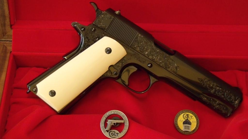 Con motivo de la conmemoración del centenario de la pistola 1911, el Colt Custom Shop fabrico unas pocas mas pistolas Presentation Grade en el año 2011 (concretamente 11 unidades), tan pocos ejemplares que solo se hicieron para dialers y distribuidores estrechamente relacionados con el Colt Custom Shoppe. Gracias a la intermediación de mi amigo javichin1991, conseguí una de estas 11 pistolas piezas fabricadas en el año en curso (en concreto la décima pistola), sin duda única en toda Europa y uno de los modelos mas valiosos jamás fabricados de la pistolas 1911. Por cierto que mi amigo Javi tiene la última de ellas, el número 11.