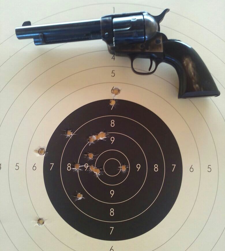 De entre todos los single acction army que tengo, sin lugar a dudas el que mejor tira es un uberti de 4-3/4 (el primero de esa longitud que compre), y para encontrar un SAA de 5-1/2 que disparase dentro de la diana con una precisión aceptable tuve que provar hasta el 4º.