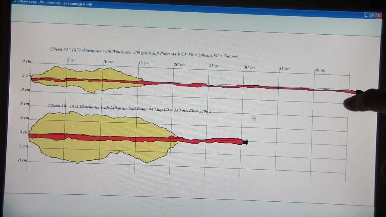 En el grafico disparos con un 44 magnum y un 44.40 el poder de parada del magnum es mayor pero el 44.40 sale del bloque balístico y continua trayectoria,, ambos semiblindados . el de arriba 44.40 y el de abajo 44 mágnum.