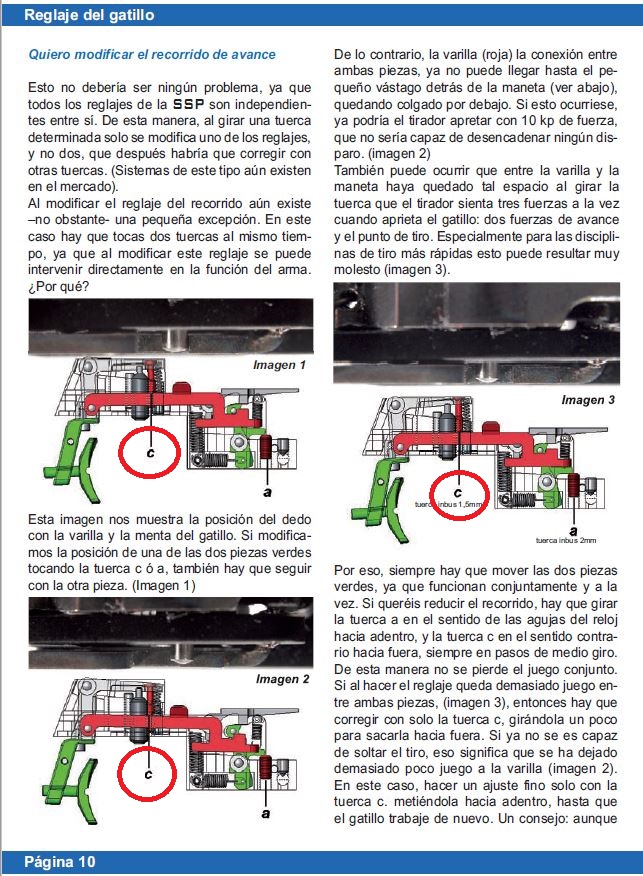 En cuanto al gatillo. Lo mismo. Tampoco hace falta una ingeniería industrial o una profesión de armero para regular uno. Pero en la SSP hay que saber bien donde se toca. Evidentemente, todo está en las instrucciones. Pero no todo el mundo las lee. Se ponen a tocar y luego es difícil volver atrás.