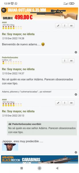 Vamos a ver, hay limites. Y ya los está sobrepasando, porque medio en broma yo puedo poner algo, pero no insulto a nadie, y lo que menos se me ocurre es pedir en un foro que retiren permiso de armas a otro coforero. No se pase.