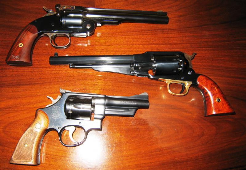 Uberti réplica de Smith&Wesson Schofield en 45LC, Uberti Remington New Model Armi 1858 calibre 44 y Smith&Wesson Higway Patrolmen del 357Mg.