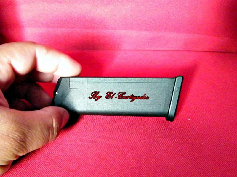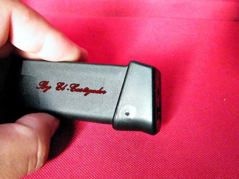 En las siguientes fotos veremos el acople para le cargador de la 19 para que se adapte a la 26 con la ventaja de tener 15 catuchos en el cargador en vez de 10.