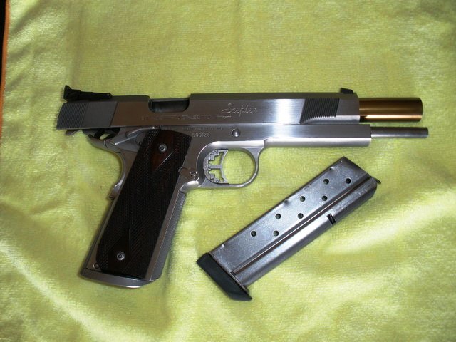 La pistola ideal sería a mi juicio la Infinity Scepter con el disparador de la Sig P210.