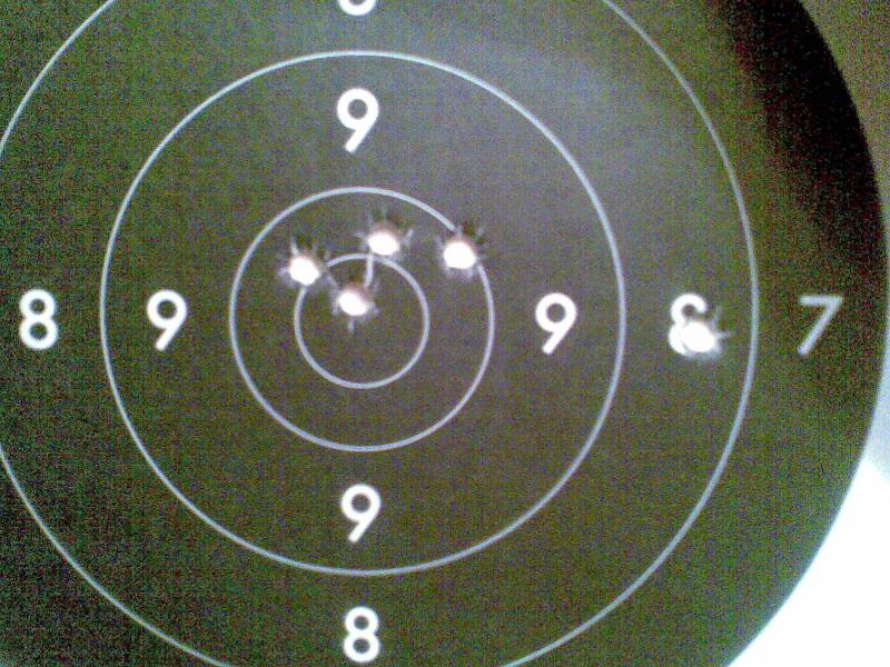 Sin ánimo de vacilar voy a poner un blanco con treinta tiros y la foto del arma con la que los hice. He de decir en mi descargo que creo que tire algo bebido, por eso los dos ochos...