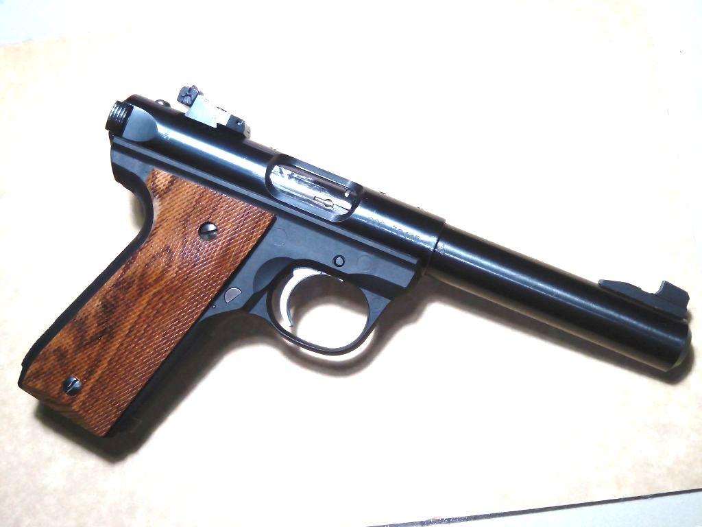 Aqui os dejo mi Ruger 22/45 venia con el alza triangular para tiro plinking !! y se cambio.