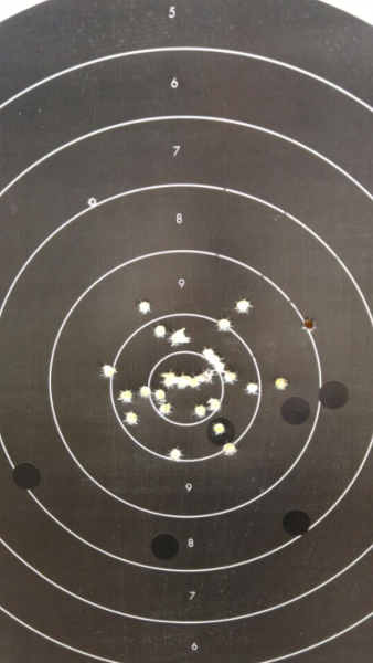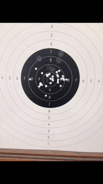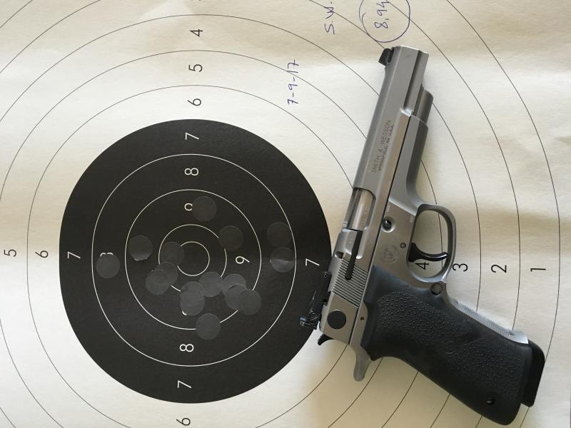 Aquí pongo unas dianas de la hermana de las 952 y 5906PPC la SW Targetchampion que va muy fina también con un disparador buenísimo, lo peor que tiene a mi gusto son las cachas muy gorditas por su cargador de gran capacidad(15).La municion es recargada con 4graims de CSB1-B.