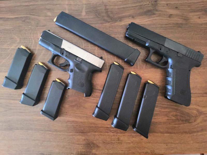 lerkrel escribió:Mis Glock's, una 19x de serie y una 23 gen3 con miras de tritio, conector ZEV, muelle DPM, tapon en la empuñadura y lasermax verde intermitente