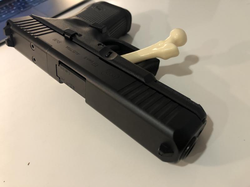 Ahí va mi Glock 19x. Con miras LPA ajustables de fibra óptica, desconector y muelles Zev.