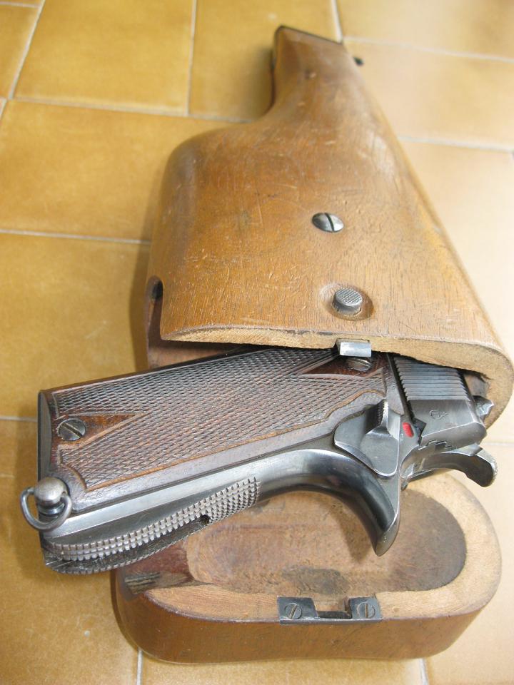 Esta pistola es realmente una mod M al que se añadió el dispositivo a ráfagas y se le adaptó una funda-culatín de madera al estilo de las Mauser C-96