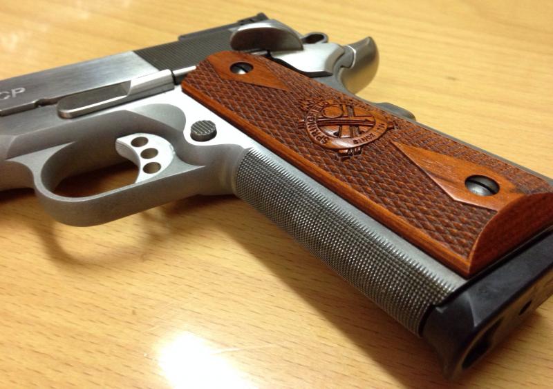 Una es Les Baer Custom Concept V, .45ACP 5". Le puse unas maravillosas cachas de madera de cocobolo.