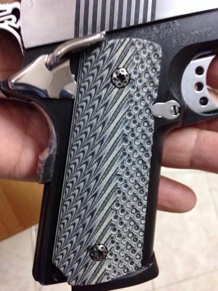 Para el siguiente compañero: me he pasado como un mes trasteando por doquier en Internet, comprando cachas de madera de cocobolo a mogollón, hasta dar con las que habéis visto en mi Les Baer que, dicho sea de paso, babeó constantemente y estoy a todas horas manoseandola. Disparar... no le hecho más de 12 tiros (no sea que se gaste) y fue para dar con la carga más "simpática" para ella.
