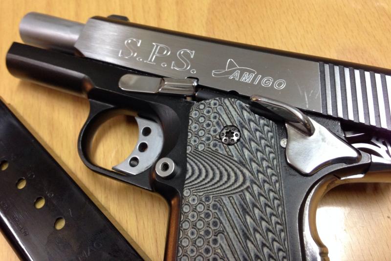 La de abajo es una SPS AMIGO, 45 ACP, 3,5", enteramente de acero inox. Las cachas y sus tornillos son una pasada y tienen un agarre del copon