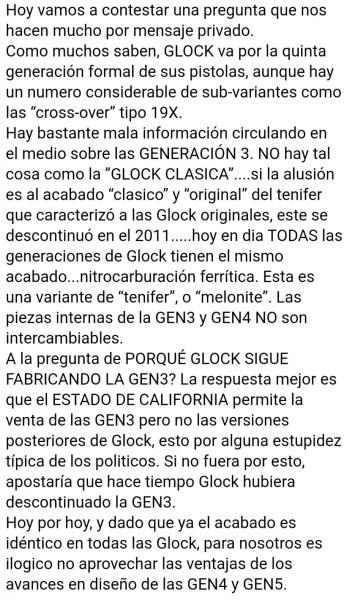 Sería de agradecer por parte del Glock que en su página oficial aclarase el acabado de las pistolas según número de serie.