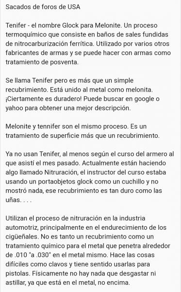 Es un acabado de trinuracion famoso en las Glock de hay su dureza al desgaste y los roces. Lo digo pero no estoy seguro, que a partir de Gen4 lo quitaron por otro acabado menos robusto de hay la duda... Que no lo se exactamente? se que la gente se quejaba que las Gen4 sufrian mas los desgastes que las series anteriores que si llevan el acabado tenifer.