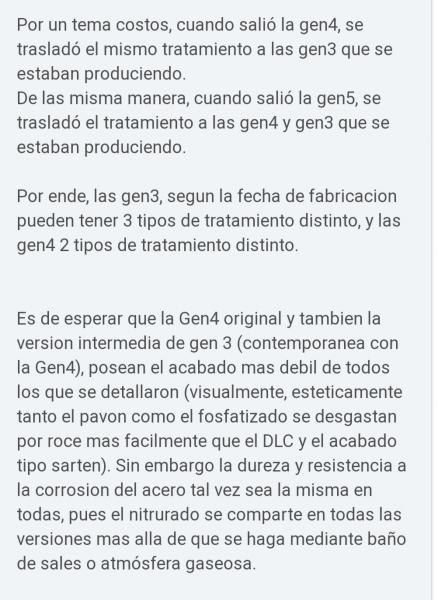 topp escribió:Algo habia oido que las gen4 no llevaban tenifer, las anteriores todas los llevan.. lo unico que desconozco es si llevan un nuevo acabado con la misma dureza que el tenifer y menos contaminante. si e escuchado comentarios de desgaste prematuro por roces en corredera... es facil de saber teniendo en la mano una 3 y 4 se ve.