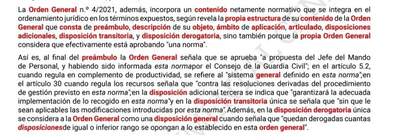 La STS de 13 de mayo es muy importante porque el Abogado del Estado había alegado que una Orden General era un acto plurimo, y el TSJ lo había confirmado, pero el Supremo anula la Sentencia del TSJ declarando que una Orden con Preambulo, articulado, disposiciones adicionales, transitorias y finales, no puede ser un acto administrativo, y es una norma. (Fundamento quinto):